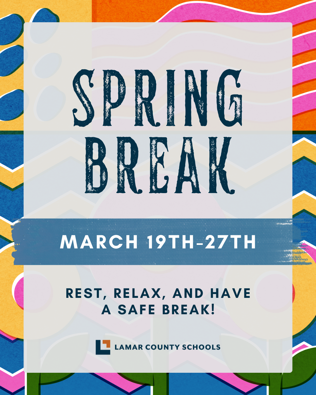 March 18, 2026 ☀️ Spring Break is Finally Here! It is time to relax, recharge, and enjoy some well-deserved time off! Lamar County Schools will be closed for Spring Break from Thursday, March 19th through Friday, March 27th. All campuses will re...